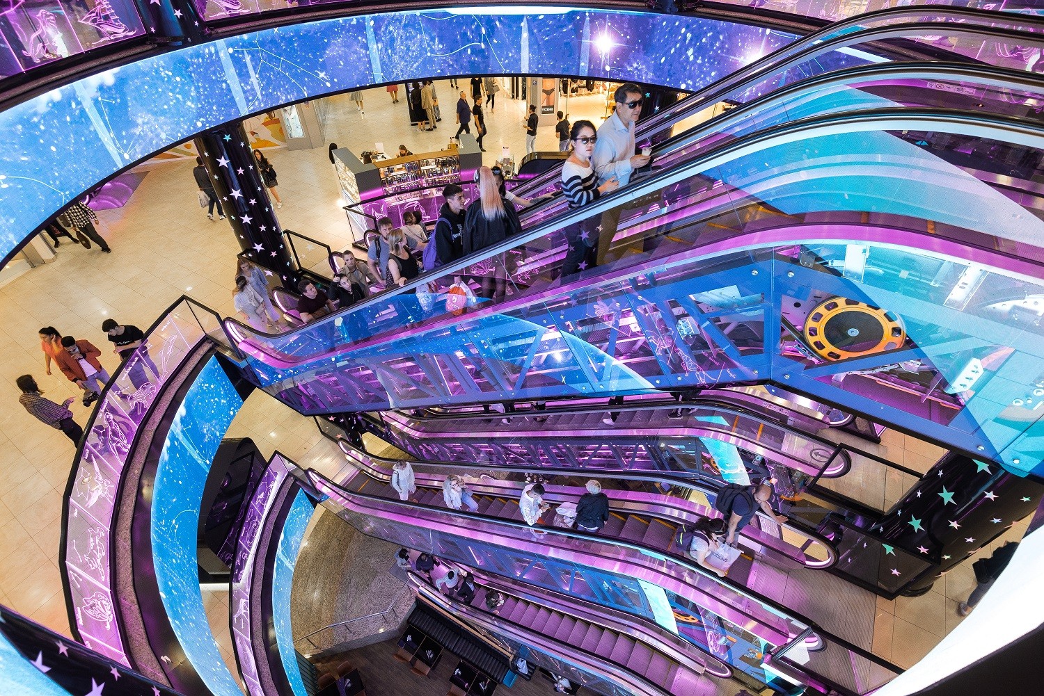 LED transparent screen: does not take up space, can be perfectly integrated with the glass curtain wall of the shopping mall, while displaying the advertisement content and the internal scenery of the shopping mall, enhancing the advertising effect.
